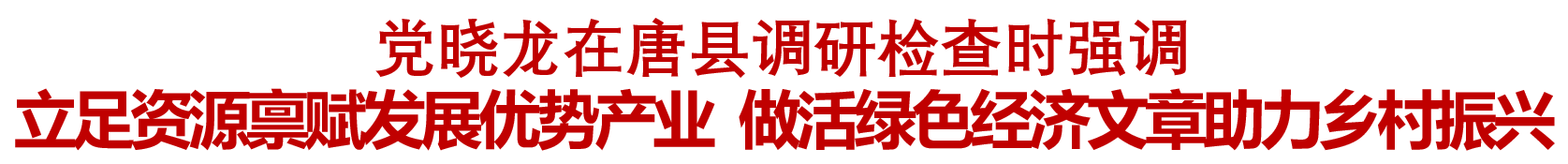 5月3日,市委书记党晓龙到唐县,就文化旅游产业、森林防灭火、乡村振兴、疫情防控等工作调研检查。他强调,要深入贯彻习近平总书记重要指示精神和党中央、省委决策部署,坚决落实“疫情要防住、经济要稳住、发展要安全”的重要要求,立足资源禀赋,发展优势产业,做活绿色经济文章,助力乡村振兴。