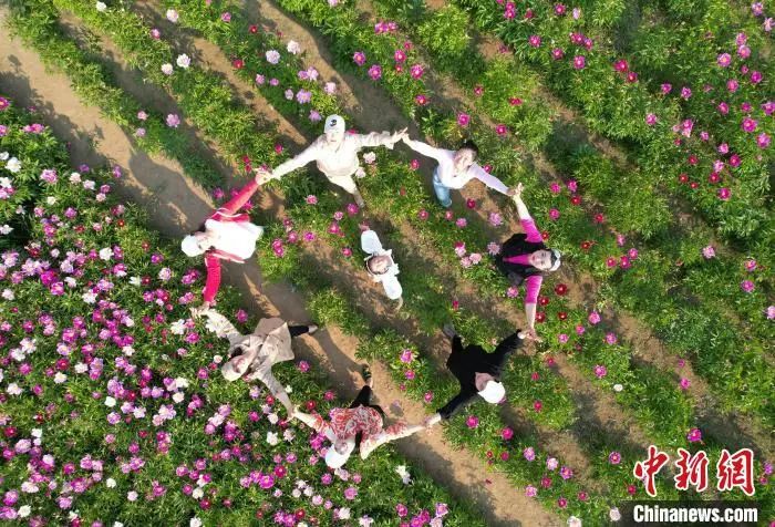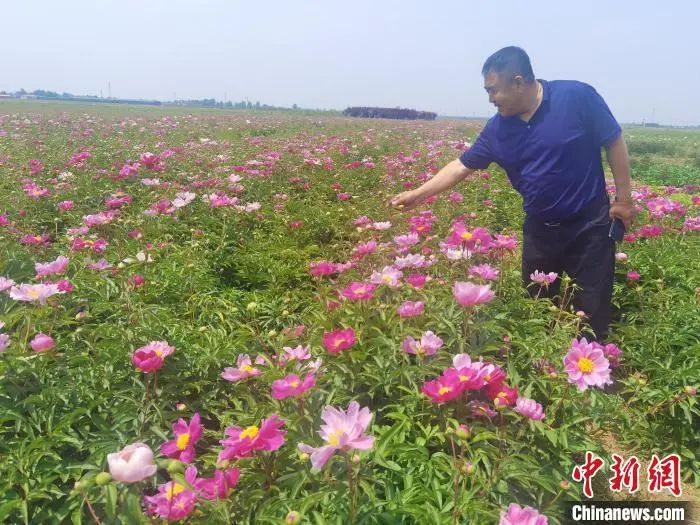 随着北戴河新区大力实施海洋生态环境保护工程,引导近海养殖退养还海。当地政府通过“公司+基地+农户”形式流转土地,鼓励村民种植牡丹、芍药。肖战龙是赤洋口村人,2018年他将家里的6亩多土地流转到赤洋花海种植专业合作社,在收租金的同时也谋了一份田间管理的差事,每天操控机械给花田除草。如今,他不但能拿到每亩地每年1000元的租金,每个月还有3600元的工资。“工作之余还能赏赏花,感觉生活更有奔头了。”肖战龙笑称。自5月上旬起,牡丹、芍药相继进入盛花期。如今,总面积1000多亩的牡丹、芍药花海吸引了不少游客前来打卡旅游。“这片花海让人不自觉就想记录下眼前美景。”游客刘云和同行的姐妹们合影留念,在花海欢快地唱起歌。