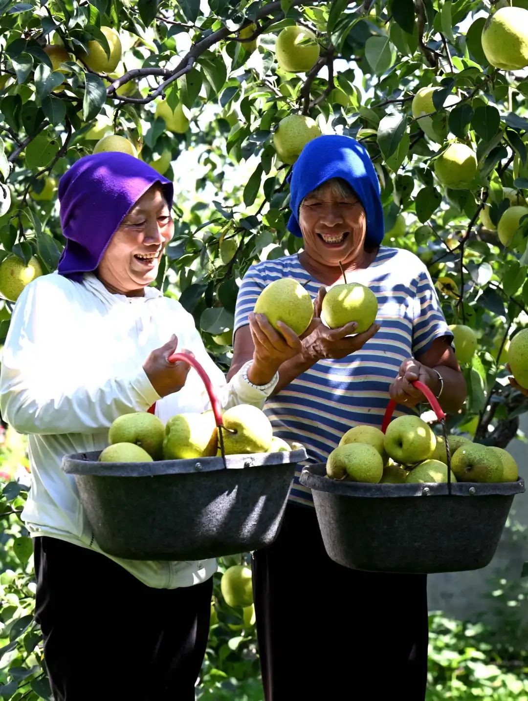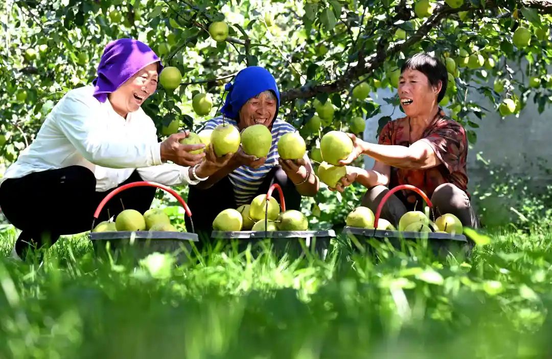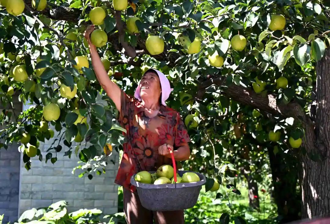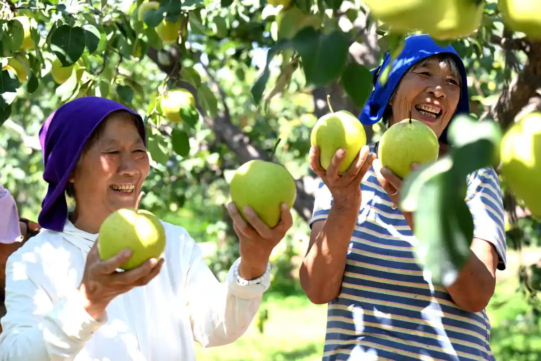 9月12日,石家庄市赵县新发地梨果生产基地梨农正在采摘雪花梨。陈其保 摄