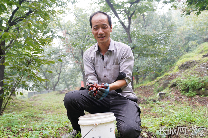 前南峪村村民郭春燕在山上收板栗。长城网·冀云客户端记者 齐彦红 摄