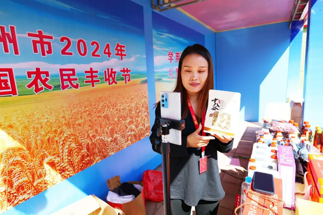 销售人员进行旱碱麦产品线上直播。赵华靖摄