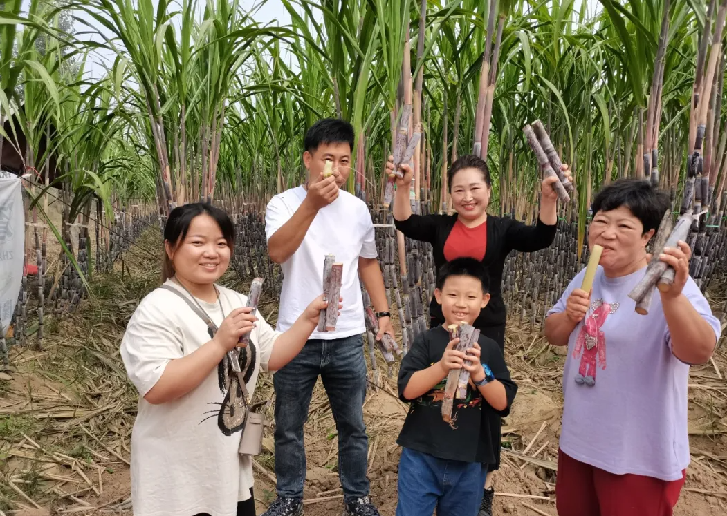 来自天津的赵先生一家到权村走亲戚,听说有一片甘蔗采摘园,便带着家人来采摘品尝,他说,能在北方看见成片的甘蔗林确实不容易,长得茂盛,口感也不错,现场亲手砍摘、品尝,原汁原味,孩子们也长了见识。