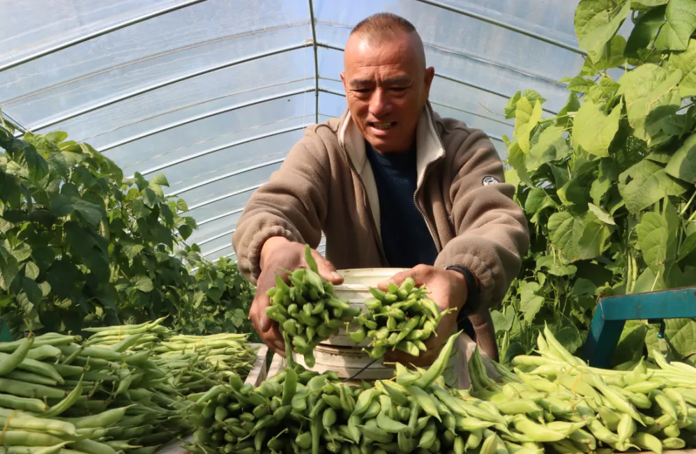“我们去年开始投资,建了100亩地的大棚,今年我们也是种的豆角、土豆、大头菜、菜花,豆角现在是采摘期,每天的采摘量在2000斤到3000斤左右,现在的价钱也非常好,达到3块到4块之间,销售也比较不错,都销售到海港区、山海关。”