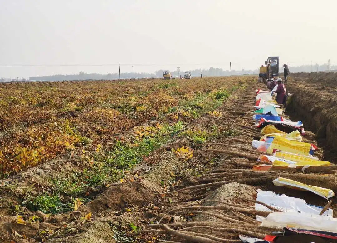 采挖、分拣、装车……近日,在河北省邯郸市馆陶县柴堡镇樊堡村,580亩山药喜获丰收,一根根“土棒棒”成为农民增收致富的“金条条”。