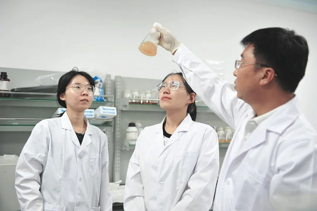昌黎果树研究所葡萄研究室主任李敏敏(右)对样本进行检测。