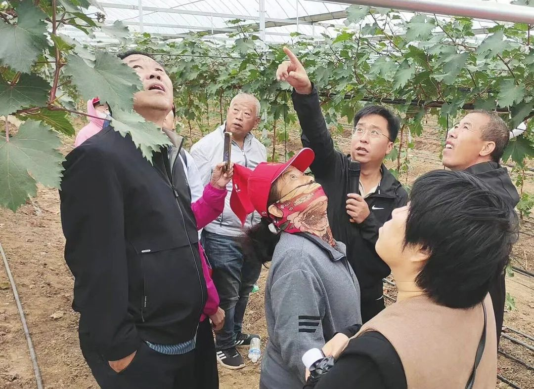 昌黎果树研究所葡萄研究室主任李敏敏(右三)为种植户讲解葡萄种植注意事项。
