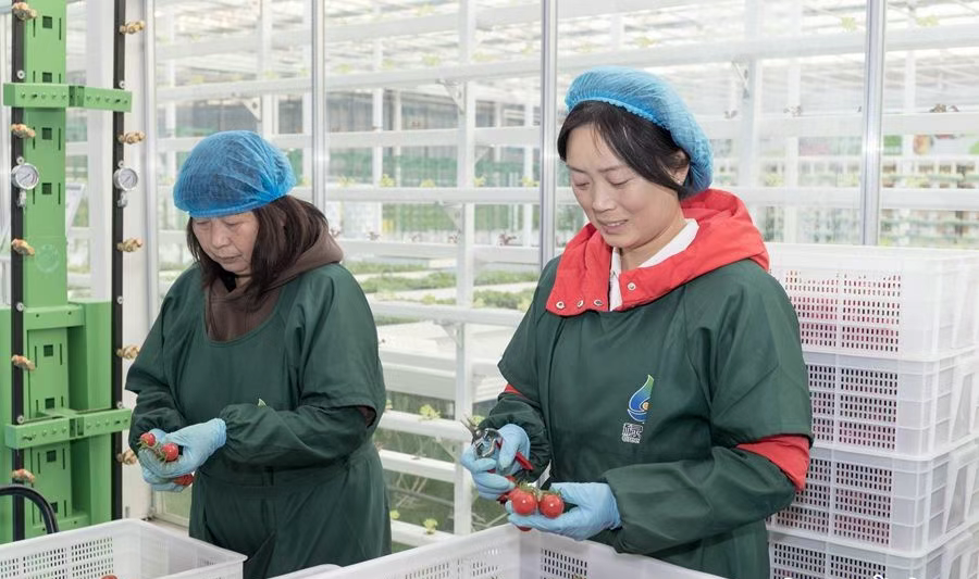 张荣的家就住在距离雄安智慧农业科技园仅1公里的北王昝村,每天骑行5分钟上班,一天劳作八个小时。“我只负责采摘、分拣、打包装这些小活儿,至于施肥浇水、温度湿度,都是智能AI说了算。”张荣笑着说,在“家门口”上班,不仅没有风吹日晒,工作强度也不大,还有一份可观的收入,简直太幸福了。