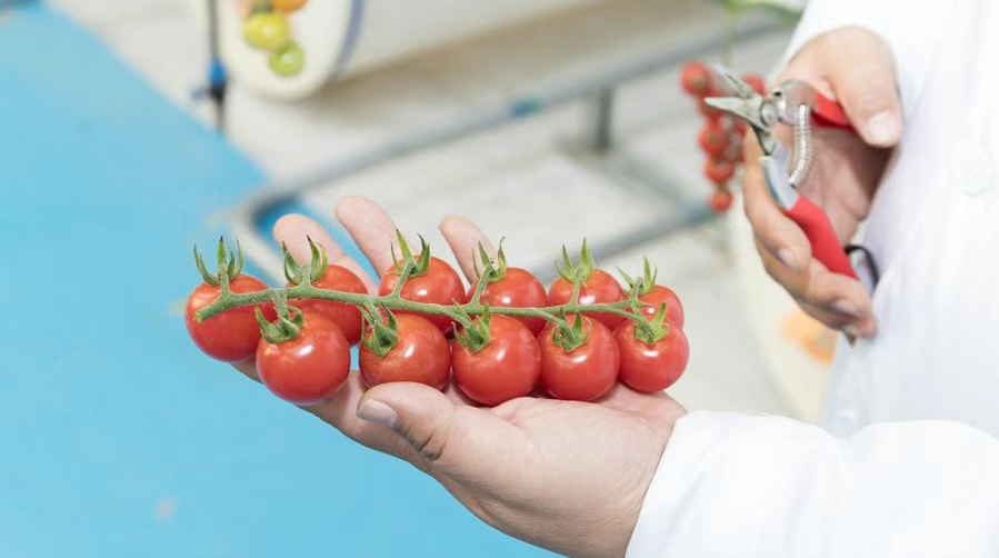 雄安智慧农业科技园种植的“爱索301”红色串收樱桃番茄
