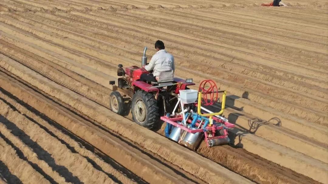 在依庄乡东路庄村成方连片的沙土地里,承包户李洪峰驾驶着载有北斗导航的大型农机正在进行精准翻耕作业。据了解,李洪峰在东路庄村承包了1200余亩地开展棉花规模化种植,大大提高了经济效益。在曹庄村,来自保定的种植大户李广新在承包的200余亩沙土地里,正在进行山药规模化种植,其本人已在依庄乡开展山药规模化种植多年,种植的山药品相佳、口感好,深受消费者喜爱,远销全国各地。