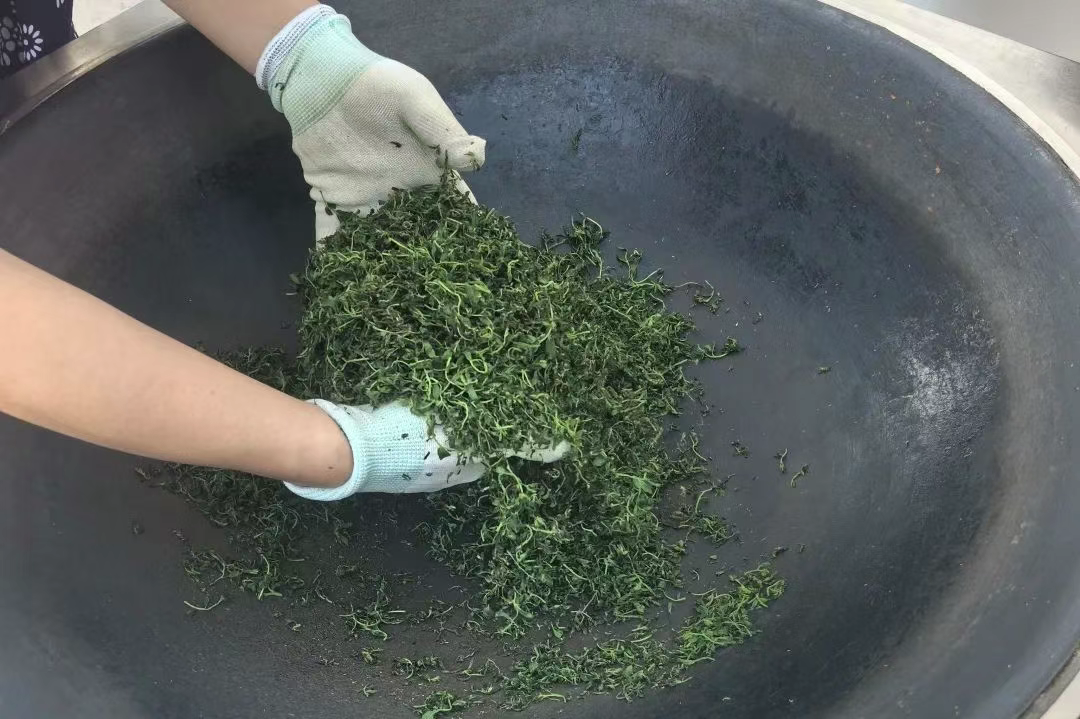据他介绍,每8斤左右的鲜叶芽可炒制一斤酸枣叶茶,炒制完成的茶叶,会根据品质进行档次分类,每斤售价在400到800元不等。为拓宽销售渠道,村“两委”干部还利用抖音等电商平台进行宣传推广,将“土”特产销售出去,从而实现村集体与村民收入的双增长。