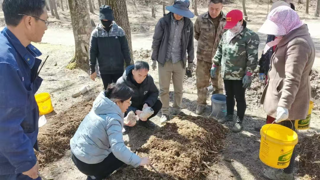 为保障项目顺利推进,乡党委政府多管齐下,通过积极协调,促成三道川村党支部书记张海云和老栅子村党支部书记乔玉东携手开展种植试验;黑龙山林场主动提供50亩林地用于免费试种;河北农业大学高义平教授团队全程跟进,从菌种培育、种植技术到病虫害防治,提供“保姆式”指导服务。高义平教授亲自来给我们指导,她发现这个地方比较适合种植赤松茸这个菌,我们又到河北涿州实验基地参观学习了一下,发现这个模式和咱们这边是一样的。黑龙山林场免费提供林地,对我们也是一个大力的支持。
