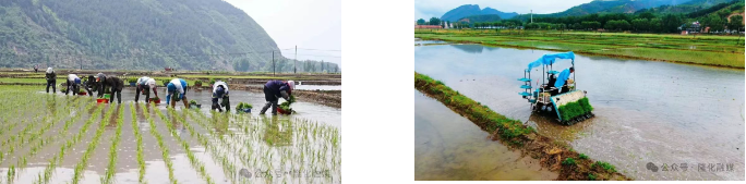在隆化县张三营镇的水稻种植示范基地的田间地头,农民弯腰插秧的剪影与现代化农机驰骋的轰鸣交织成一幅生机勃勃的农耕图景。隆化地处北纬41°国际水稻黄金产业带,这里青山连绵,河谷纵横,土壤肥沃,气候宜人,为优质水稻的生长提供了绝佳环境。这片“绿色海洋”的背后,是隆化县推动水稻规模化、标准化种植的坚定步伐。
