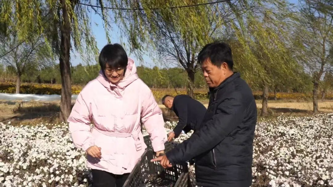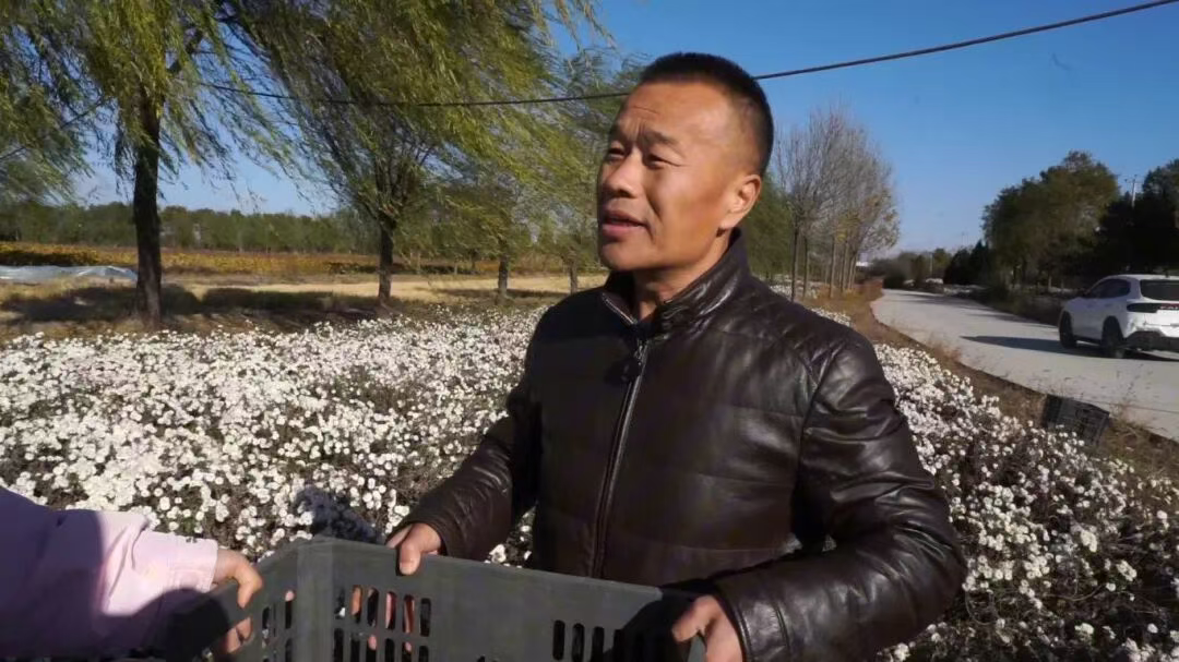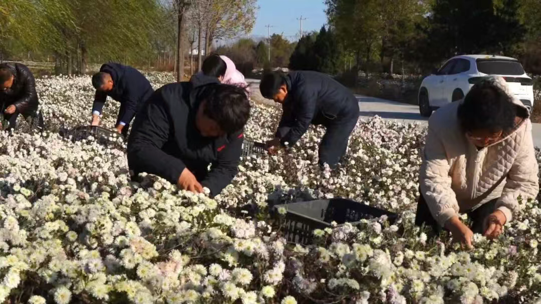 菊花种植有了规模,也有了名气,不仅壮大了乡村经济,更让不少当地村民实现了“家门口”就业。村民赵书箱一上午穿梭在菊花丛中,弯腰俯身忙着采收,不一会就装满一筐。