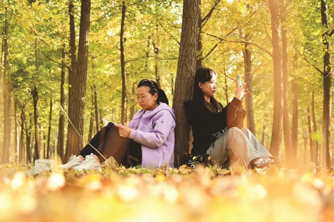 树与风嬉闹,人同叶相视。霜降给凤城带来了阵阵凉意,却无法掩饰金叶飘、玉枝摇的火热银杏林,10万余株银杏树和如织的游人一起勾勒出一幅文旅融合的绚丽画卷。