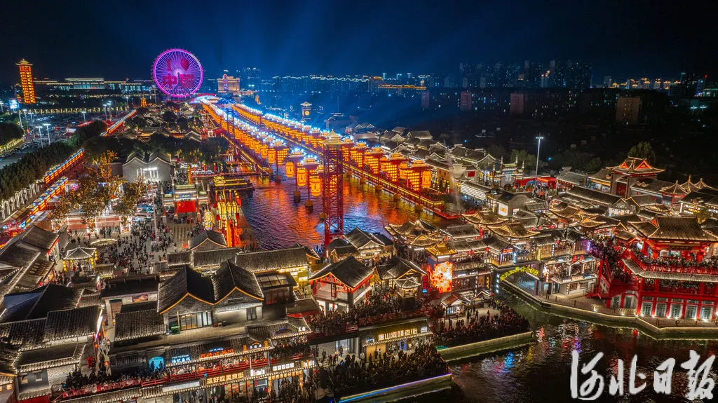 10月3日,沧州市中心城区大运河畔的南川老街灯火通明热闹非凡。(河北日报资料片) 河北日报记者 张昊摄