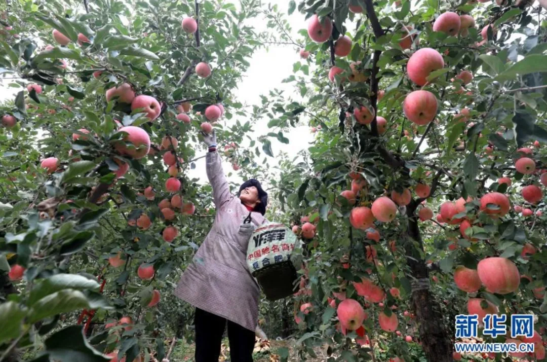 农户在石家庄市井陉县孙庄乡洛阳村苹果园采摘苹果 新华网