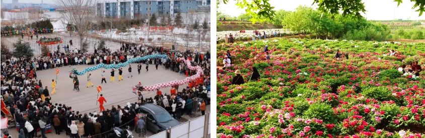 河北鑫伯特生态农业开发有限公司通过“基地+合作社+农户”的管理经营模式,吸纳王一村及周边1000余人就近务工,并带动部分农户发展芍药鲜切花种植。在社会传播方面,2024年CCTV4《中国新闻》、央视频、邯郸日报等多家媒体对王一村万亩秀林花海、牡丹节、年俗文化节进行了现场报道,网络点击量突破30万,有效提升了知名度和美誉度。