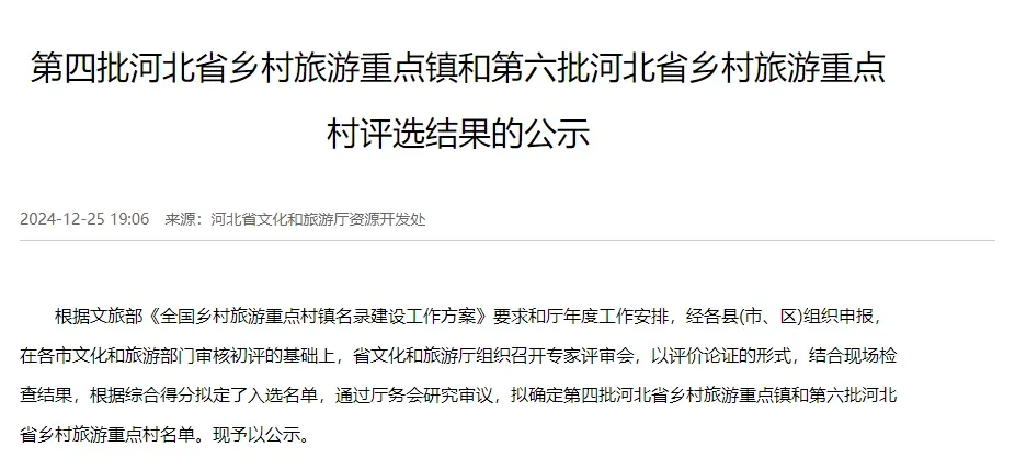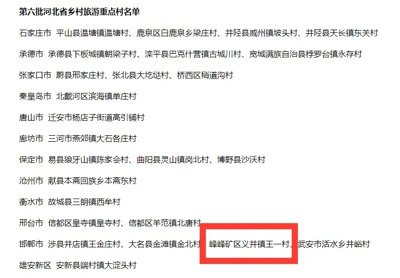 第六批河北省乡村旅游重点村名单