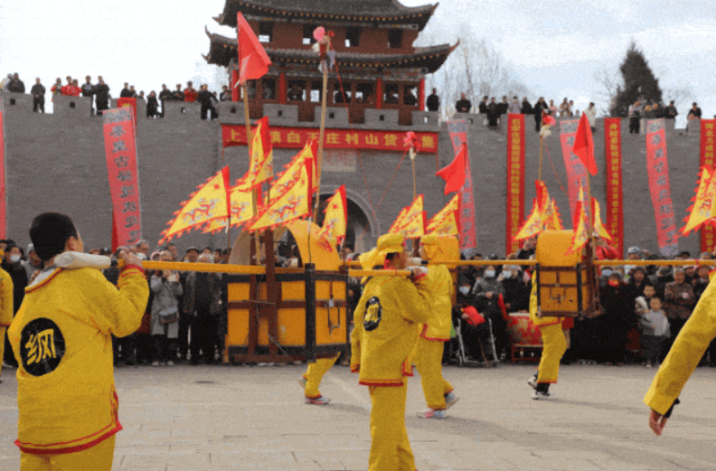 看点:广场内设有农产品展销区、美食制作区、包括缸炉烧饼、水磨面、石磨面粉、粉条、煎饼等土特产,还有,现场制作大锅菜、炸面菜、撒年糕等。不仅能品尝美食,还能了解和体验地方乡土风情。