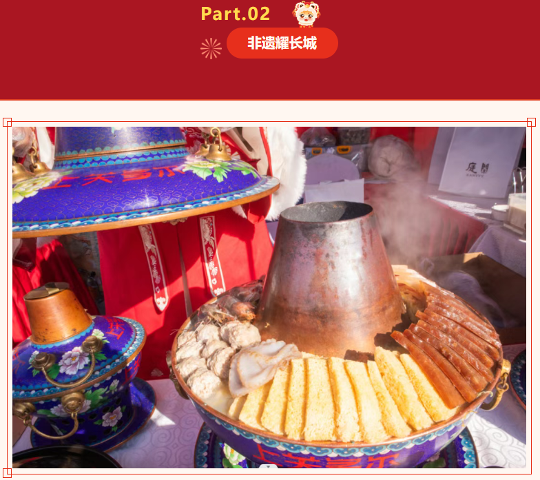 以“二月二”时令传统美食和非遗传统小吃为主,融合山海关地方风味龙耳(饺子)、龙须(面条)、龙眼(馄饨)、龙胆(炸糕)、龙骨(糖葫芦)、龙鳞(春饼)、寓意吉祥的财源滚滚(驴打滚)、金豆开花(爆米花)以及秦皇岛青龙粘饽饽、北戴河杨肠子、山海关浑锅等特色地方非遗美食丰富游客味蕾,令其在体验传统节日精神文化内涵的同时,品味春日的人间烟火,进一步丰富节日文化生活,增强民族文化认同和文化自信。