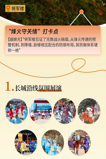 整个杏花节期间,各类精彩活动将持续不断。4月4日下午,“杏约长城·守护与传承——长城老郭粉丝分享会”温情开启。在这里,你不仅能聆听长城守护者老郭与长城的动人故事,还能参与沉浸式文化体验活动。跟着老郭徒步将军楼至花楼天梯,沿途了解敌楼构造、长城防御体系,参与趣味问答赢取杏花节限定文创产品。活动中还有汉服旅拍、直播联动等环节,线上线下双向奔赴,共同感受长城文化的魅力。