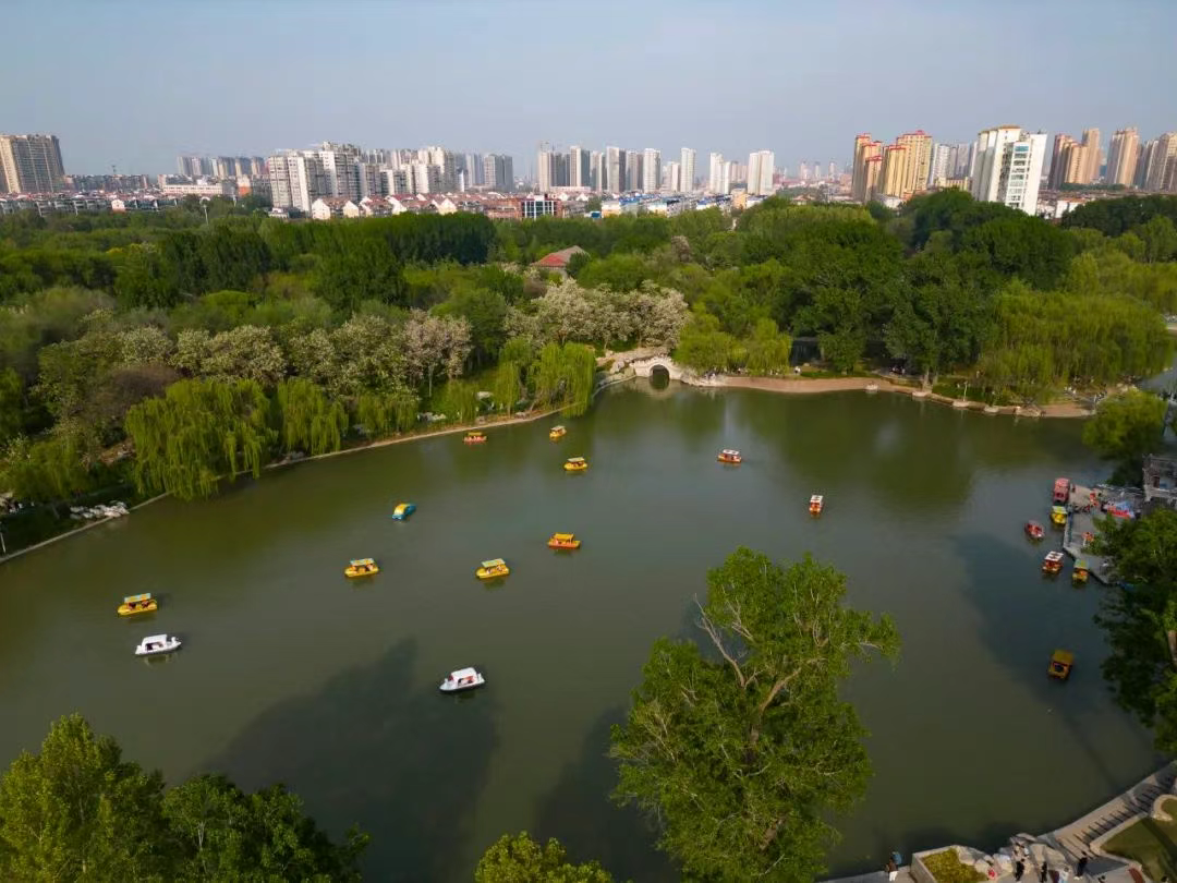 微风吹拂,达活泉湖面上泛起一阵涟漪。泛舟湖上的游人仿佛置身画中,与一旁游过的白鸭不时打着招呼。百花园内赏花的人们纷纷拿出手机拍照,留下美好瞬间。郭守敬纪念馆内花香四溢,学生正跟随讲解员了解科学家郭守敬的治水方略和天文成就。