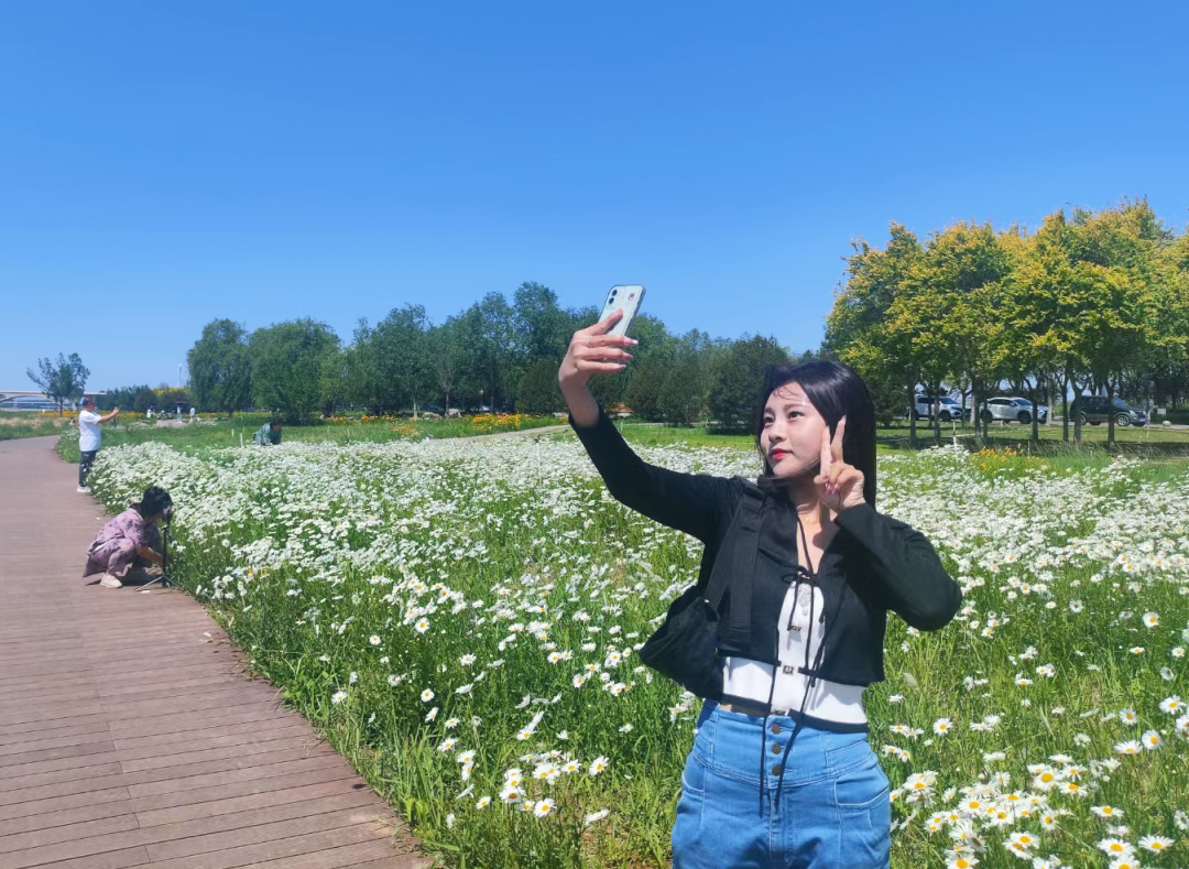 一女孩在滹沱河畔的花海拍照石家庄市园林局滹沱河生态区管护中心正高级工程师张琰焱介绍,今年春季,石家庄市园林局滹沱河生态区管护中心更新了大量的地被花卉品种,新种植了大滨菊、柳叶马鞭草、金鸡菊、鼠尾草、粉黛乱子草、画眉草等多年生宿根类花卉以及玫瑰、月季等木本花卉。