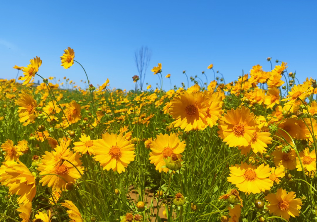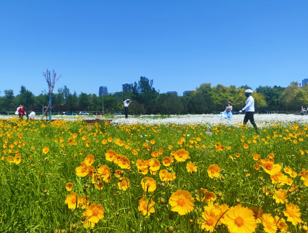 目前,滹沱河沿线的大滨菊、金鸡菊、鼠尾草正值盛花期,游客还可相继观赏到蓝紫色花系的柳叶马鞭草,红色花系的玫瑰、月季,橙色花系的天人菊。漫步其间,每一步都是风景,每一帧皆可入画。