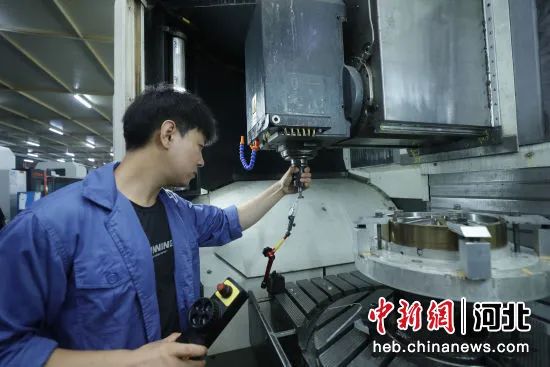 图为京南 固安高新区新兴园河北航天振邦精密机械有限公司技师正在校正数控五联动加工中心参数。 陈童 摄