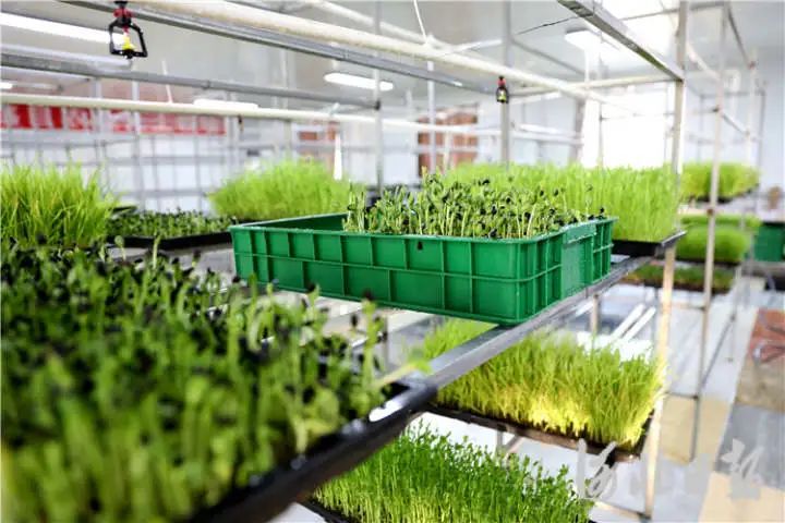 在调河头镇南郭庄村,鑫目农业合作社的芽苗菜无土栽培温室内,芽苗菜长势喜人。通讯员高语婧摄