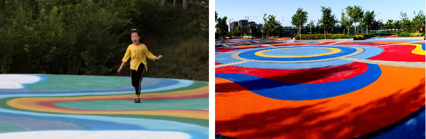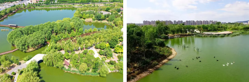 公园通过对采煤沉陷区、受损沟渠进行修复,充分利用场地的现状条件,保留其水体形态,建设成为集开放活动、滨水景观、疏林草地为一体的城市绿肺。同时衍生出各类体育项目,修建休闲运功场地并配套相关运动设施43处,为广大市民群众提供了丰富多样的运动选择和休闲空间。