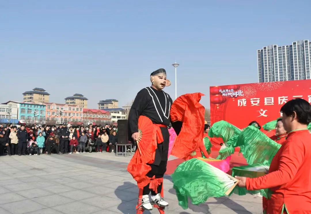 2月10日,元宵节到来之际,在成安县人民广场一场别开生面的庆元宵非遗民俗展演暨千人共跳成语广场舞活动火热举行,为群众带来一场精彩纷呈的文化盛宴,营造出浓厚的节日氛围。县领导高献刚参加活动。