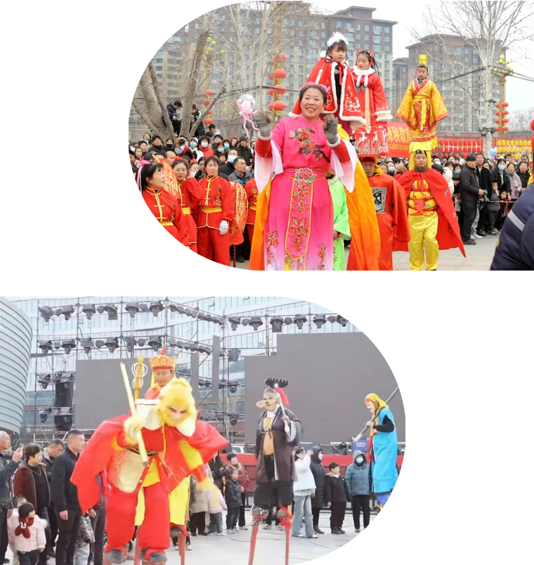 在广场的另一边,高跷表演者们也闪亮登场,他们像是一群高大的巨人,迈着奇特的步伐入场。他们的步伐或轻盈,如同在云端漫步;或稳健,好似扎根大地的古树。其中一位表演者扮成孙悟空的模样,他高高地站在高跷上,手中挥舞着金箍棒,做出各种灵动的动作,一会儿举棒指向天空,仿佛在向玉帝示威;一会儿又将棒扛在肩上,抓耳挠腮,活脱脱就是那大闹天宫的齐天大圣。