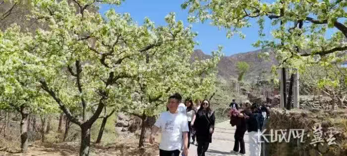 游客漫步梨花的海洋中。通讯员 张宝 摄“家人们,趁着花期,在这儿邂逅漫山遍野的梨花,再尝尝地方美食,住住乡间民宿,城市的疲惫瞬间消散,真的太治愈了,来官场一趟绝对值!”漫步梨花的海洋中,来自北京的游客刘夏先生通过直播向屏幕另一端的网友们热情介绍。官场乡梨树种植历史悠久,拥有盛果期梨树1.6万亩,其中百年以上老树达5000棵。每年4月,万亩梨花盛放,洁白花海与古老长城相互映衬,形成壮美景观。立足本地资源优势,官场乡积极探索产业发展新路径,以“以花为媒、以节促产”,将生态“颜值”转化为经济“价值”,全力打造“春赏花、秋品果”的特色文旅产业链,不仅吸引大量游客前来体验乡村生活,还带动周边农家乐、民宿等服务业发展。