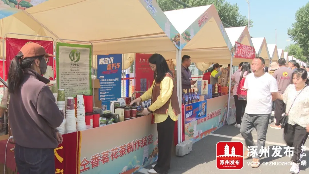 同时,涿州贡米等非遗美食类、义和庄吊样西瓜等涿州特色农产品类项目更是香气四溢,吸引了不少市民驻足品尝、购买。