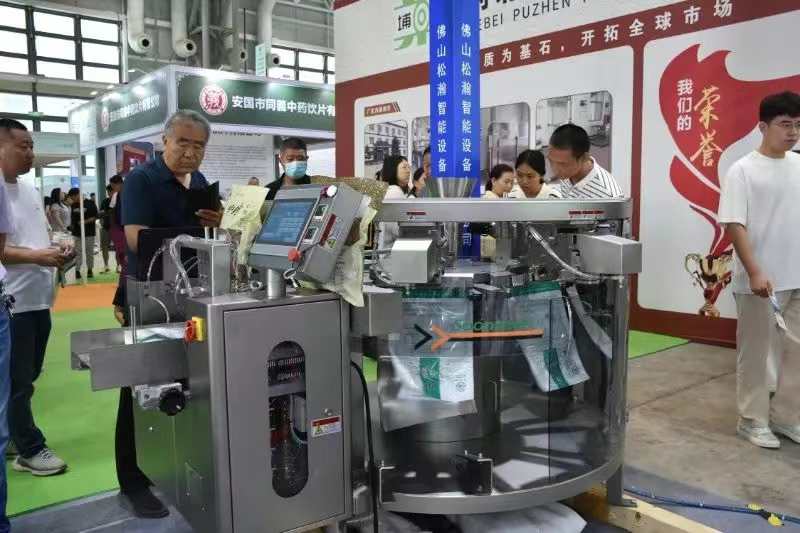 图为第二十七届国际药材节展商进行包装设备演示。张亚德 摄