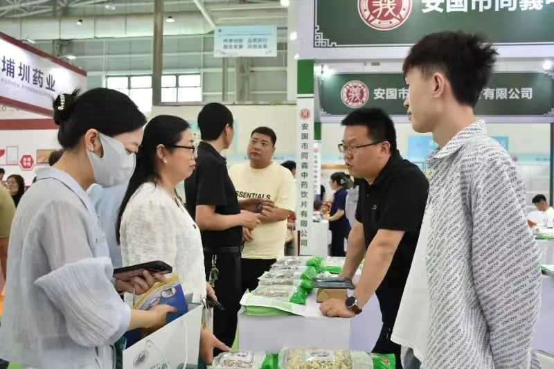 图为第二十七届国际药材节上,参展企业热情接受客户咨询。张亚德 摄