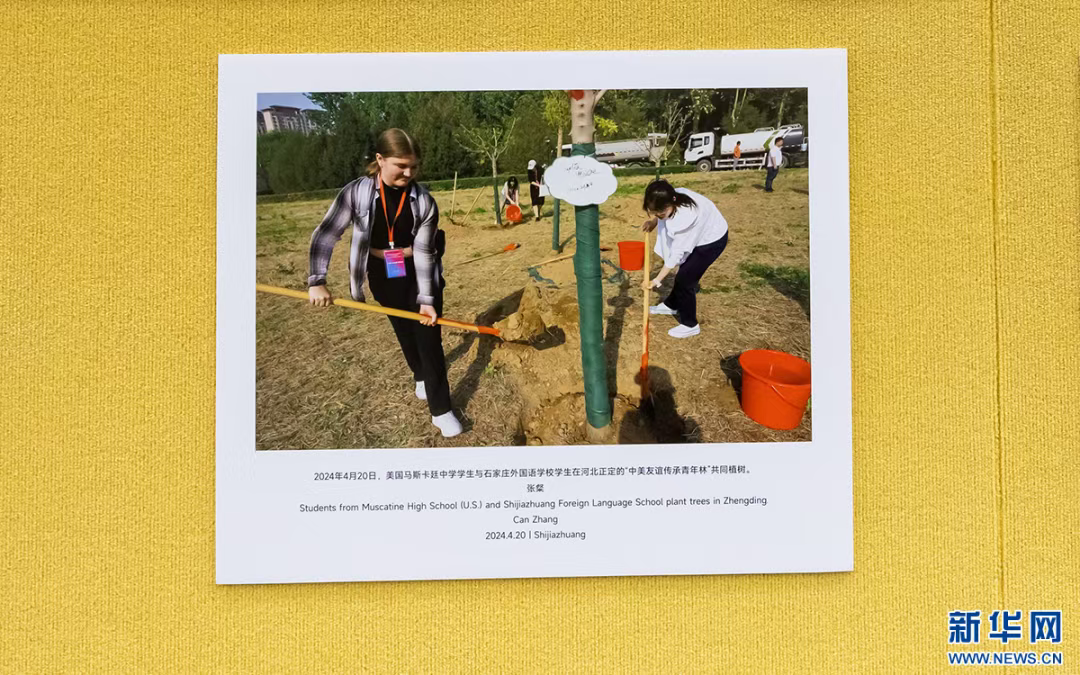 图片展中,还有美国大学生在石家庄市京剧团进行体验、中美学生携手植树的美好画面,见证着跨国情谊,以及中外文化的交融。