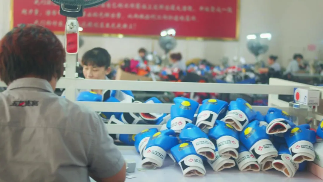 工人在石家庄市五龙体育器材有限公司车间进行皮革加工。无极县政府供图强化科技创新,增添发展新活力