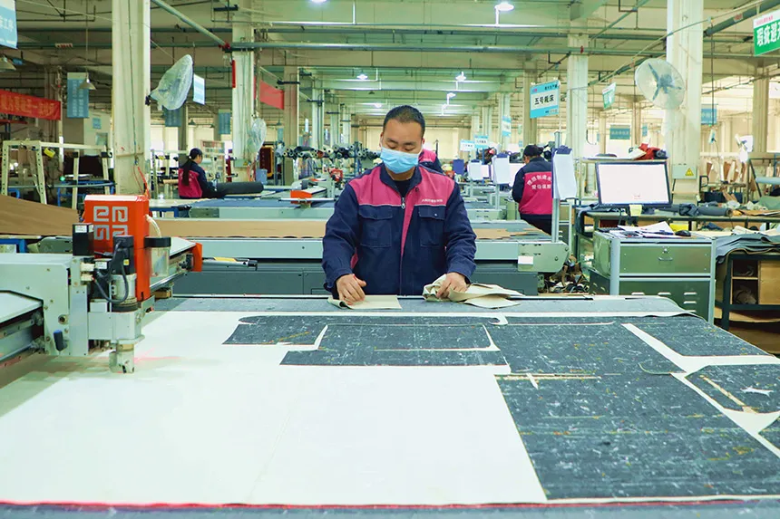 在香河经开区淑阳工业园内,爱依瑞斯廊坊家具有限公司作为智慧家居集群企业,在其皮沙发成品车间内,工人正对新款沙发成品进行质量检验。由于新款沙发增加了智慧功能性设计,从而舒适度更高,深受顾客喜爱,销售量实现大幅增长。据该公司开发部负责人张峰介绍,爱依瑞斯品牌于2009年入驻香河,公司目前有100多人的设计研发团队,每月会推出10多款新品,年研发投入占收入的10%到20%。“目前,我们已经取得发明专利2项,实用新型专利1项,外观专利181项,发表了专业技术论文1篇。”张峰自豪地说。“过去我们更多专注于传统家具市场,现在数字化、智能化在产品设计研发生产过程中不断被应用,像具备语音遥控等功能的智能家具已经占到我们整体销售量的50%以上。”公司行政负责人杨胜补充道。