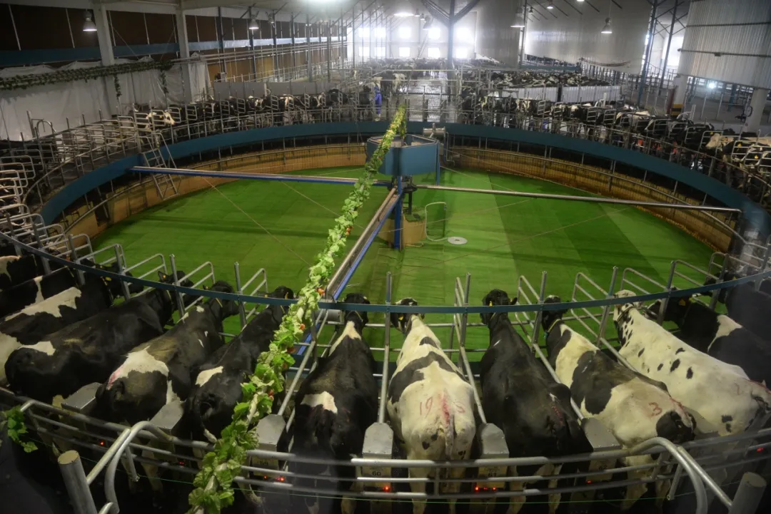 威县君乐宝乐源牧业挤奶大厅。