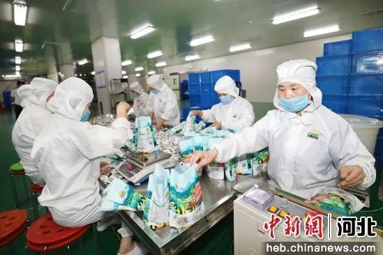图为位于霸州都市食品产业园的加州原野(霸州)食品有限公司车间内,工人正在分拣包装食品。贾珺 摄