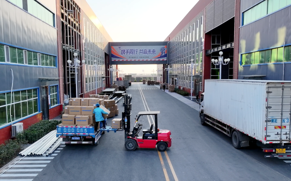 在东汪镇,工人正在装车,准备发货。新华社记者王晓摄